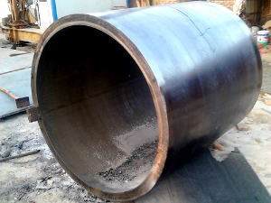 6、卷園:將加熱到850℃~900℃的鋼板用四輥卷管機卷制成型。